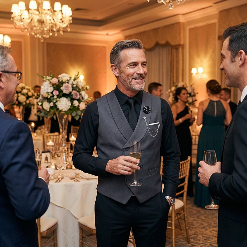 KOMPLETT 3-DELAT SET â InnehĂ„ller en matchande jacka, vĂ€st och byxor för en perfekt koordinerad och elegant look. Detta sparar dig tid och möda att leta efter separata plagg och erbjuder ett komplett, fĂ€rdigt formellt ensemble.