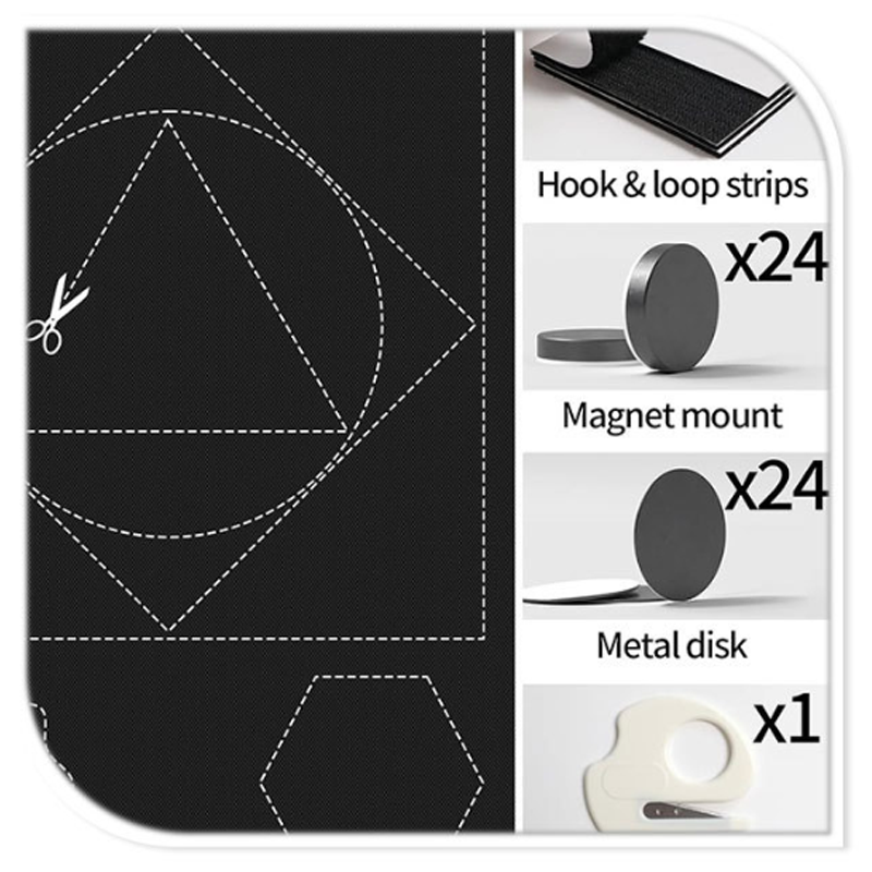 đ Installationsanvisning: Se till att magneterna Ă€r jĂ€mnt fördelade lĂ€ngs ramen för att undvika ljusglipor (justera efter behov för total mörklĂ€ggning).