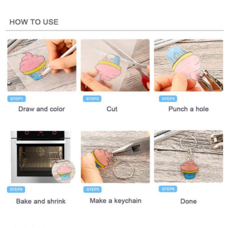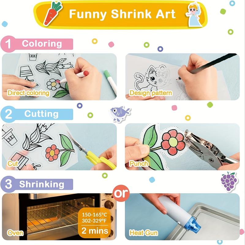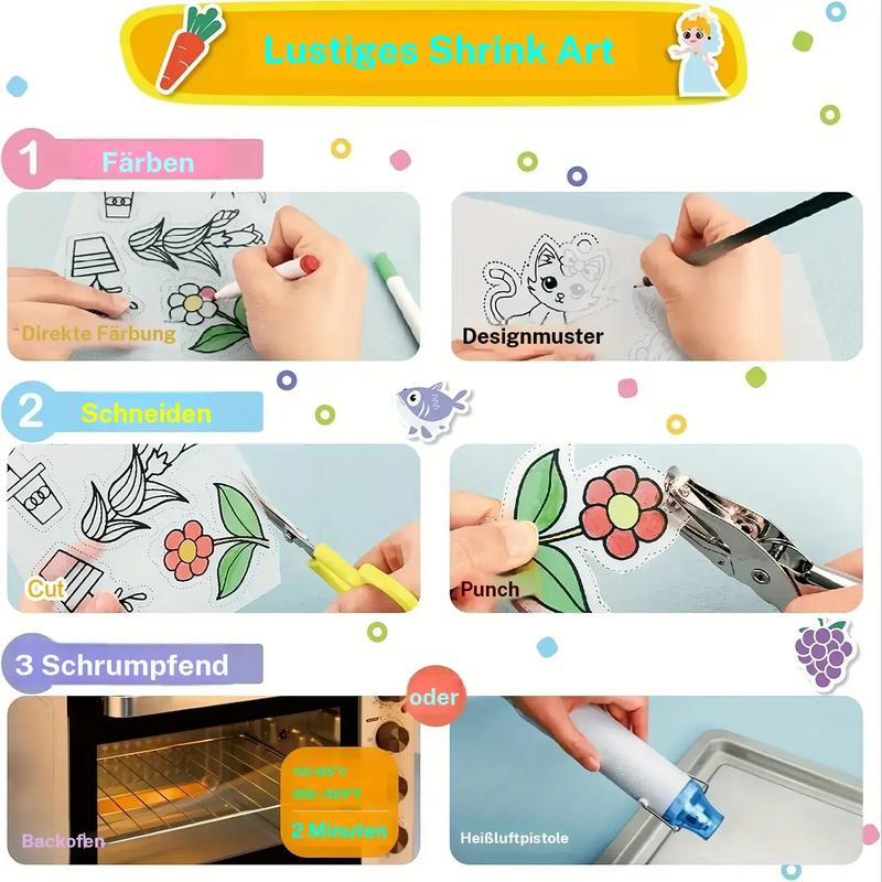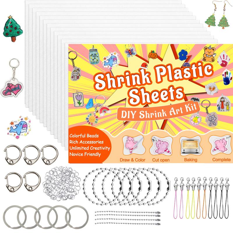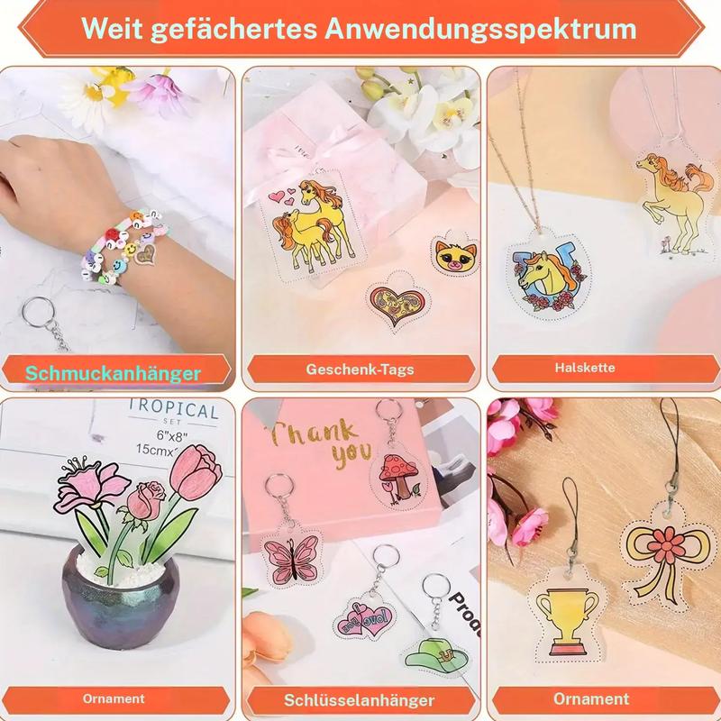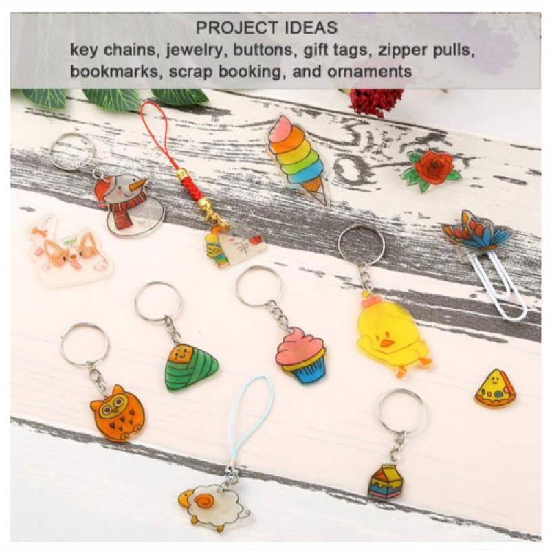 【Kreativ aktivitet】: Detta set innehåller 12 ark krympplast för fantasifulla pysselprojekt och skapande av personliga nyckelringar.