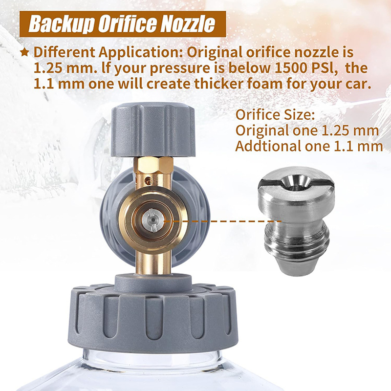 DUBBLA MUNSTYCKEN - Levereras med en förinstallerad 1,25 mm öppning och ett extra 1,1 mm munstycke. Detta gör att du kan optimera skumproduktionen för just din högtryckstvÀtt, vilket sÀkerstÀller maximal skumtjocklek Àven med lÀgre PSI-enheter.