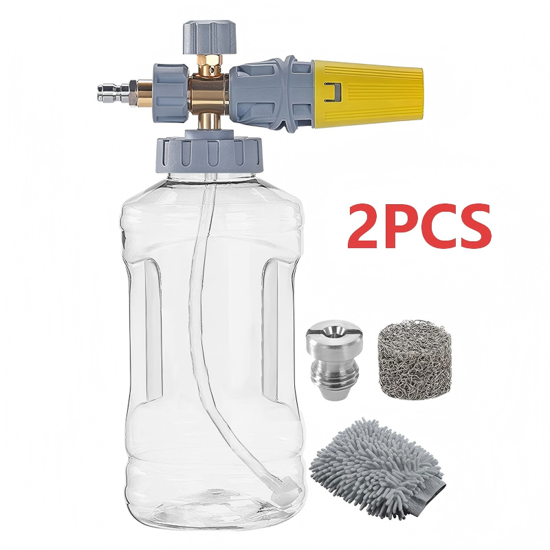 UNIVERSAL SNABBKONTAKT â Utrustad med en standard 1/4" snabbkontakt och en medföljande M22-14 mm adapter, denna skumkanon kan enkelt fĂ€stas pĂ„ en mĂ€ngd olika högtryckstvĂ€ttspistoler för en sĂ€ker och lĂ€ckfri anslutning.