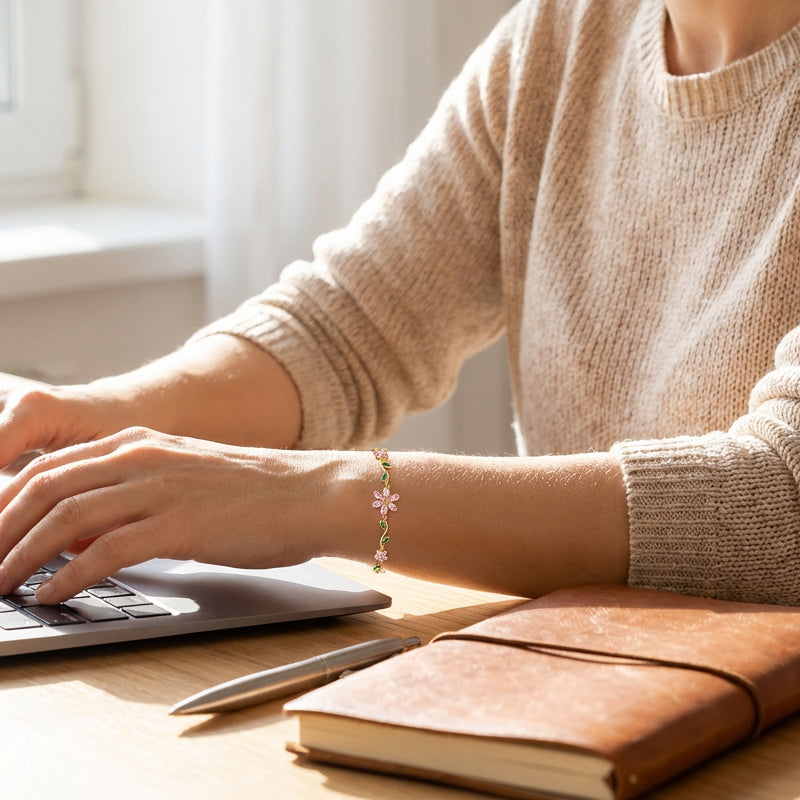 För att bevara armbandets glans, undvik kontakt med starka kemikalier som parfym, lotion och rengöringsmedel.