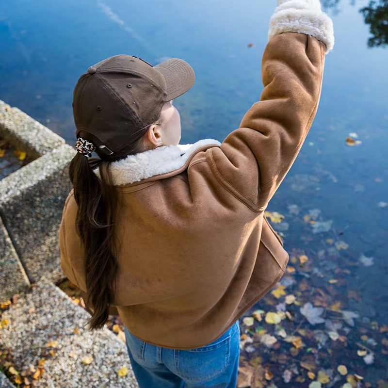 MULTIFUNKTIONELL VÄXELBAR DESIGN: Få två distinkta looks i en jacka. Växla enkelt mellan en chic mockläderslutning och en mysig plötsktextur, anpassa din stil till alla tillfällen samtidigt som du maximerar din garderobs mångsidighet.